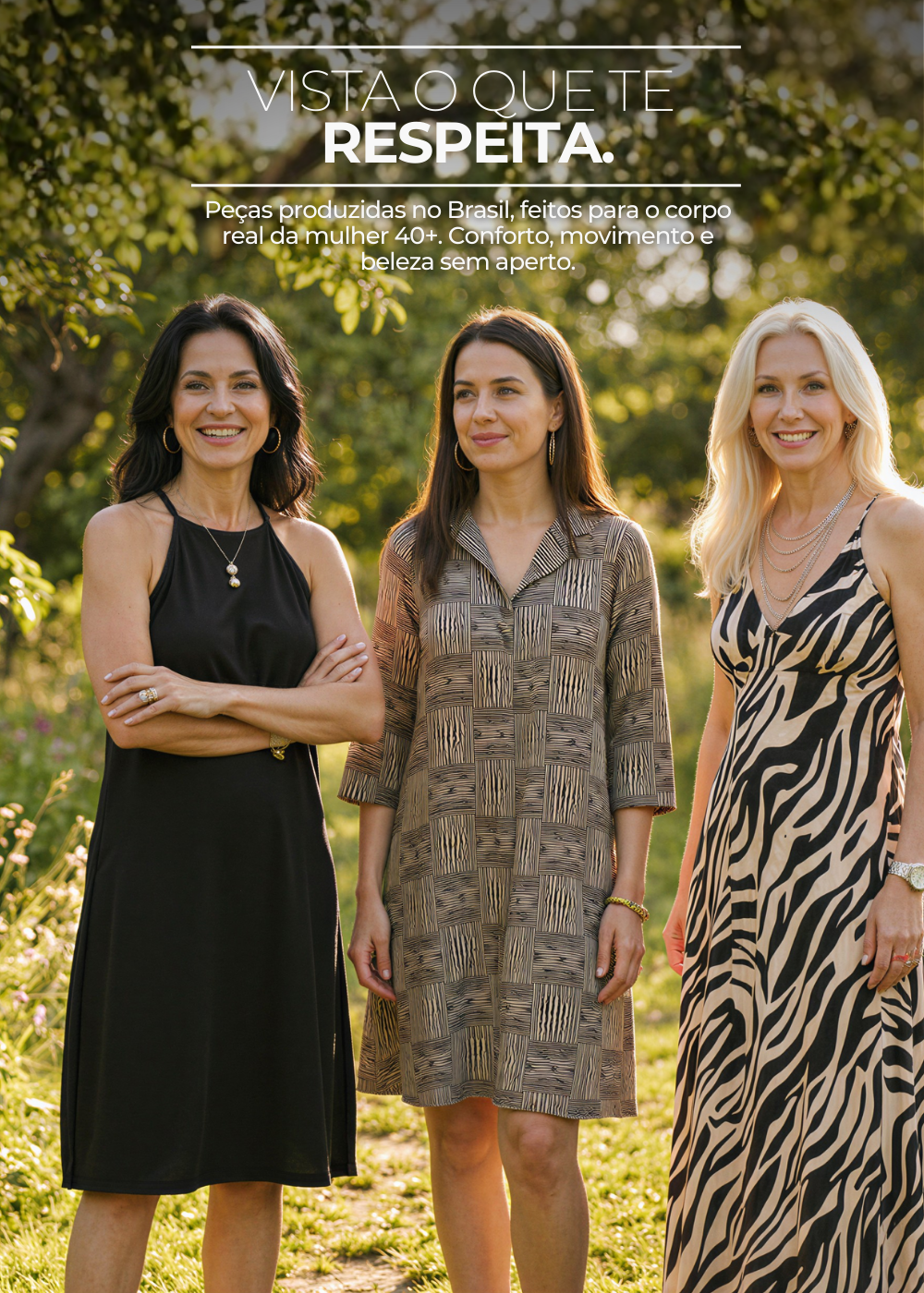 Valorizamos tecidos de qualidade, como viscose premium e algodão biodegradável, porque acreditamos que moda pode ser sofisticada sem abrir mão do conforto e da consciência.